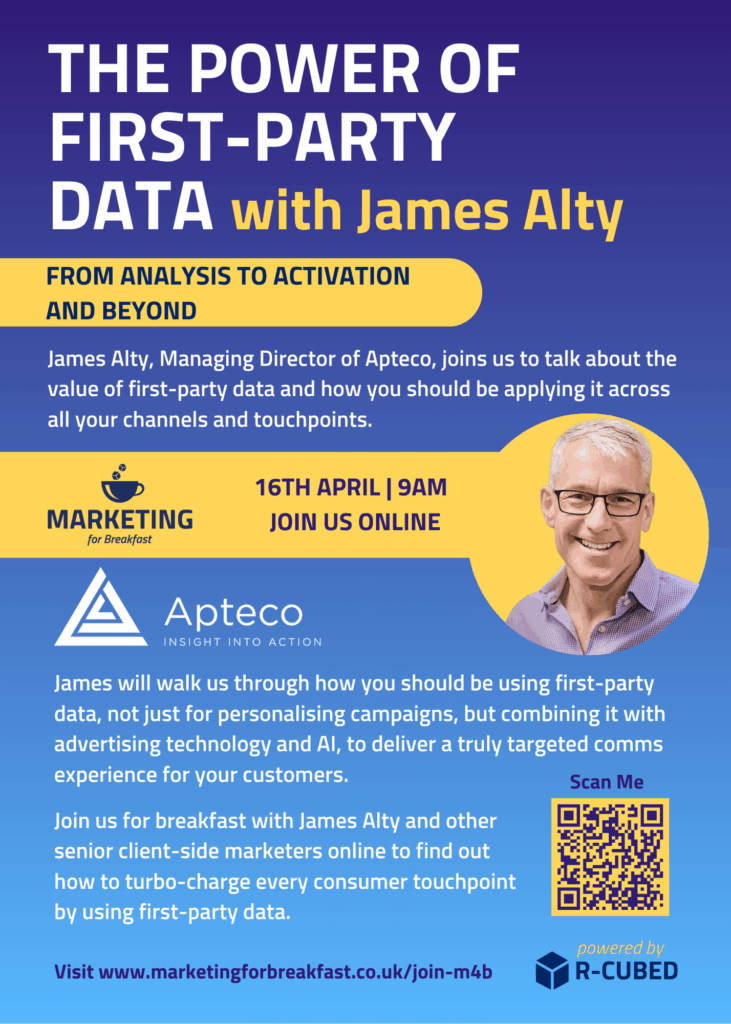 James Alty, MD of Apteco, led an in-depth discussion about how you should be using your first-party data to greatest effect. James is an expert in his field and talked about how, as marketers, we have so much data at our fingertips, but have a responsibility to use it, not just profitably, but also with care and respect.